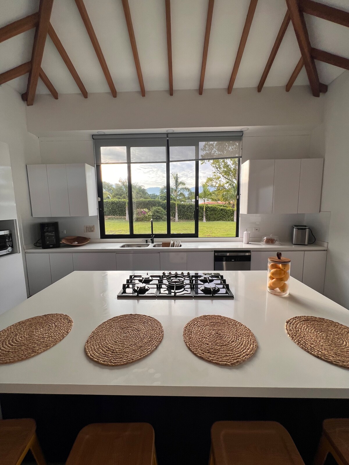 Que detalle¡¡¡ Un sitio para un plan de descanso muy familiar. Amplias zonas verdes, áreas totalmente independientes. Piscina, asador y kiosko, comodamente distanciados de la casa. Disfrute de la tranquilidad de un verdadero descanso con un clima soleado tropical y agradable. Si quieres estar confortable y descansar. Visítanos!!!! Los esperamos¡¡¡ para ser sus anfitriones. La tasa de aseo se encuentra incluida en la tarifa.