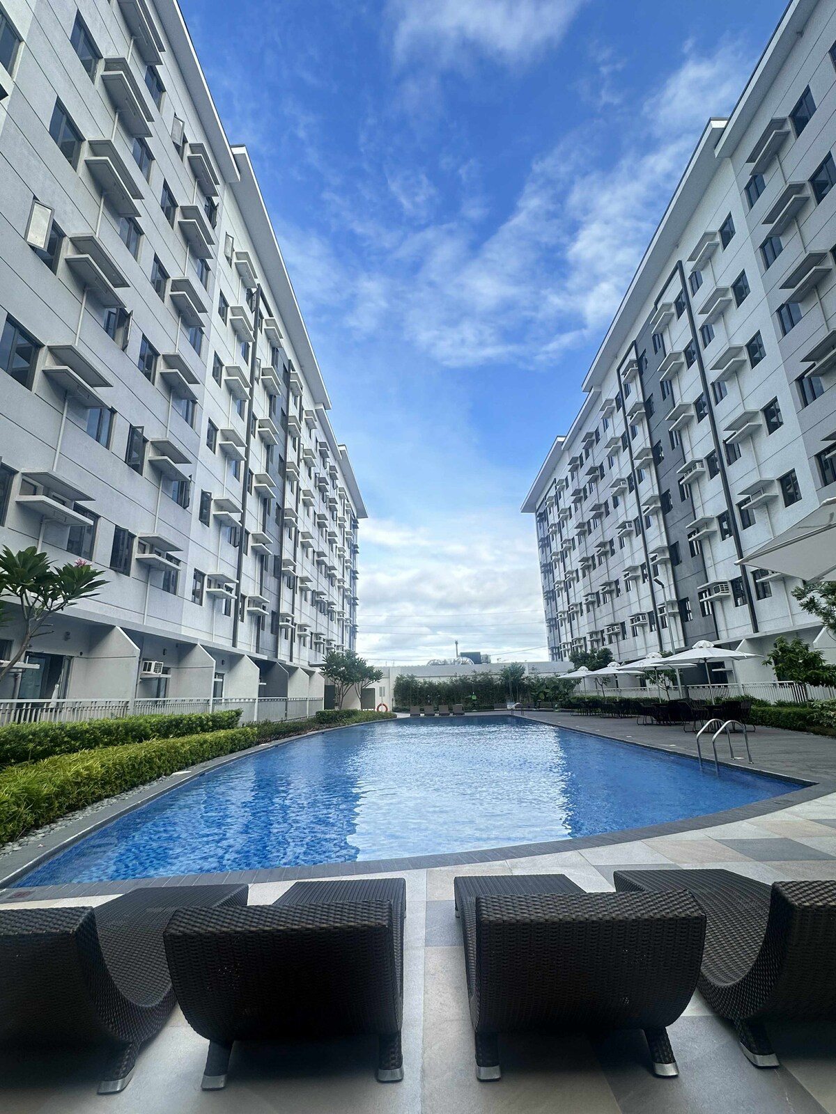 Disfruta de una estancia relajante en este elegante condominio en Sta. Rosa Laguna, a pocos minutos de Enchanted Kingdom. Perfecto para parejas, grupos pequeños o familias, puede alojar cómodamente hasta 4 huéspedes. ✨ Características: Internet rápido de🔸 300 mbps con Netflix y Disney Plus para un entretenimiento sin fin 🔸Cocina totalmente equipada para cocinar tus comidas favoritas 🔸Acceso a una piscina, área de baloncesto y juegos de mesa para actividades divertidas 🔸Espacio acogedor y moderno para relajarse y recargar energías ¡Reserva ahora y disfruta de una estadía inolvidable!
