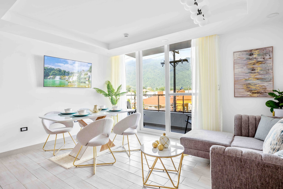 ¡Bienvenido a nuestro moderno apartamento en el doceavo piso de "Stanza" donde disfrutarás de una vista espectacular de la montaña. Completamente nuevo y diseñado con atención a cada detalle para ofrecerte una estancia inolvidable. Totalmente equipado, encontrarás todo lo que necesitas para una experiencia cómoda y relajante, sin necesidad de salir. Ya sea para una escapada de negocios o de placer, este apartamento te ofrece el refugio perfecto!