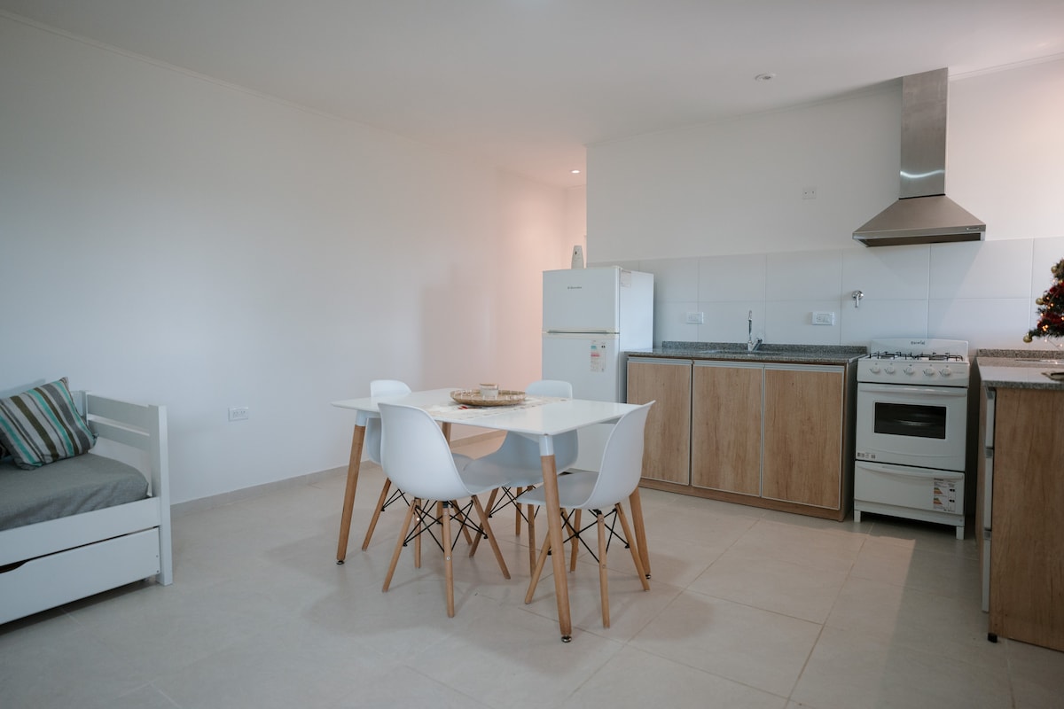 Esta totalmente equipado para 2 personas. Cuenta con cocina comedor, baño y 1 habitación con cama matrimonial. Balcón propio, cochera techada y churrasquera en espacio compartido. Cuenta con: vajilla, ropa de blanco, TV e internet. Está ubicado a 1 km del centro, 2 cuadras del casino principal de la ciudad, a 1 cuadra del hospital y a 8 cuadras de la zona de bares, restaurantes,