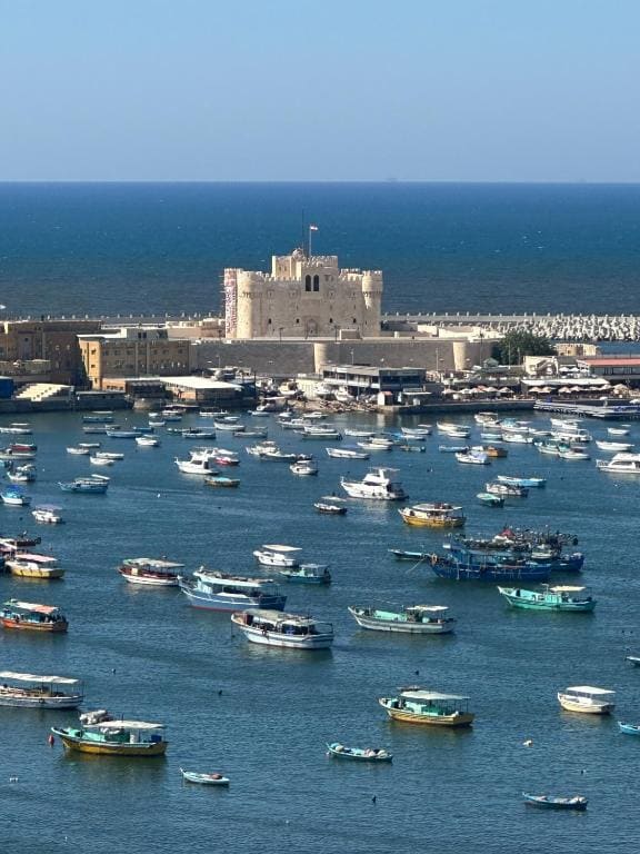Bienvenido a nuestro lujoso apartamento ubicado en el corazón de Alejandría, que ofrece impresionantes vistas panorámicas del mar Mediterráneo, la icónica Ciudadela de Qaitbay y la Bibliotheca Alexandrina. Perfectamente diseñado para la comodidad y la elegancia, nuestro apartamento combina las comodidades modernas con el encanto del entorno histórico de Alejandría. Disfruta de una variedad de comodidades diseñadas para mejorar tu estadía. El apartamento cuenta con aire acondicionado central, WiFi de alta velocidad y una cocina totalmente equipada.