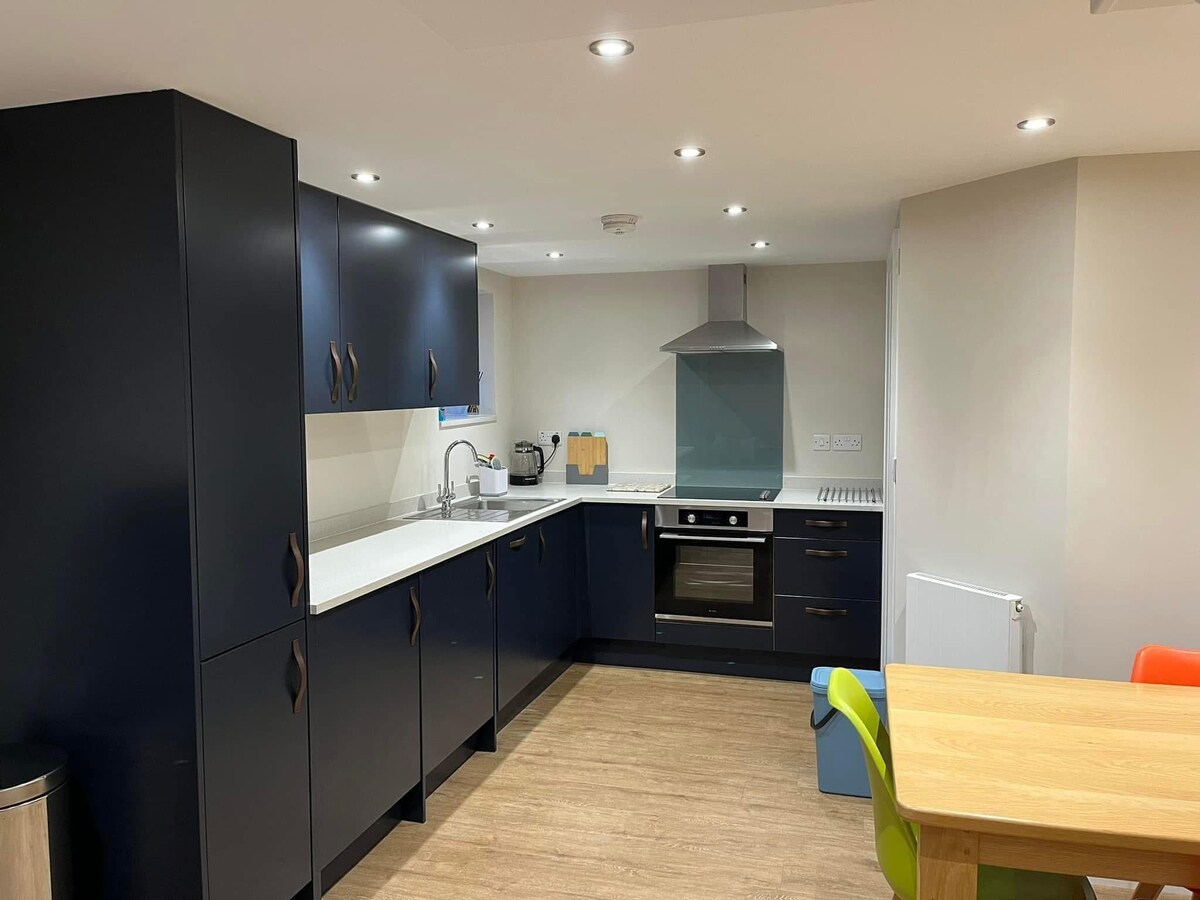 Una casa de vacaciones de 2 dormitorios, elegante y moderna, recién reformada. Ofrece una habitación doble y una habitación con dos camas individuales, ambas con televisores inteligentes y un baño familiar arriba con ducha. En la planta baja hay una cocina de planta abierta, comedor y sala de estar con otro televisor inteligente, un lavadero/guardarropa independiente y un aseo en la planta baja. En el exterior hay una zona de patio con asientos y cobertizo para guardar bicicletas. Una unidad privada ofrece espacio para 2 coches. Lo sentimos, no se admiten mascotas.