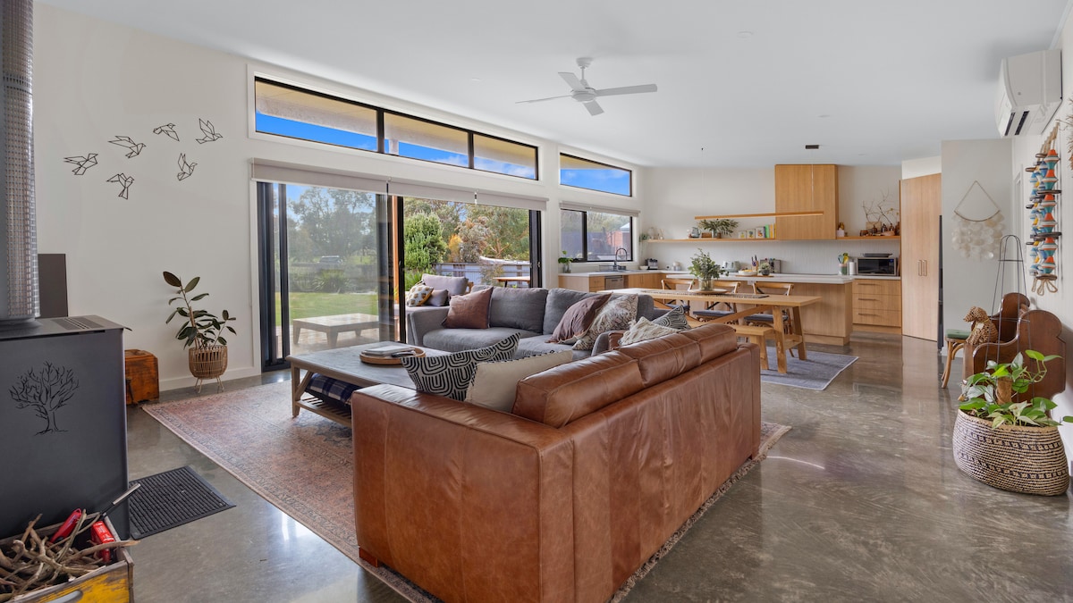 Halcyon Cottage Retreat ofrece una versión moderna del alojamiento Bed and Breakfast en Gippsland. Tiene vistas a las cordilleras Strzlecki y ofrece la escapada perfecta al campo o una «base de operaciones» para profesionales de fuera de la ciudad. Está a poca distancia en coche de Melbourne, pero te sentirás a un millón de kilómetros de distancia. Las enormes ventanas panorámicas tienen vistas a Wild Dog Valley. Te sentirás en la cima del mundo mientras te sientas y te pierdes en las interminables colinas verdes y los cielos estrellados.