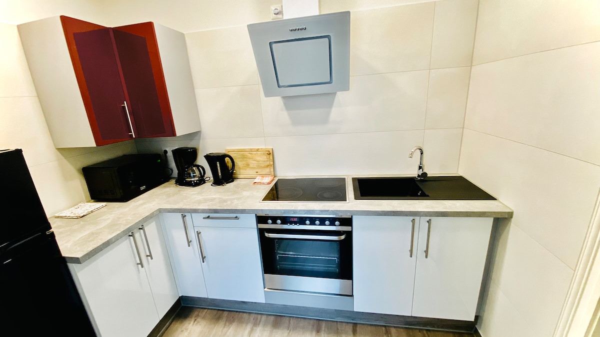 Alquilamos un acogedor apartamento recién amueblado para 1 a 2 personas en una ubicación tranquila. El departamento está totalmente equipado y tiene una sala de estar de 27 m². Tiene una cocina con comedor, un dormitorio con cama doble de 1,40 m de ancho y un baño con ducha / inodoro. Se pueden utilizar servicios como wifi gratuito, TV de pantalla plana y lavadora. Hay sábanas y toallas disponibles. No se puede fumar