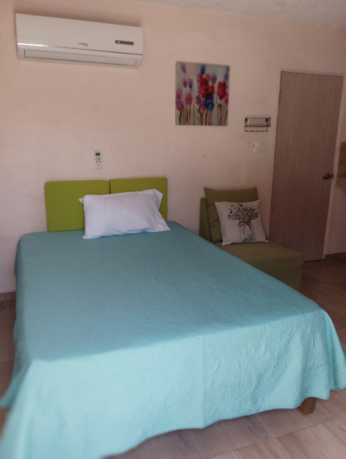 Departamento totalmente equipado ideal para una placentera estancia con todos los servicios agua caliente, tinaco, aire acondicionado(frio/calor), utensilios de cocina, electrodomésticos, servicio de entremetimiento como televisión de paga(totalplay), Internet. Cerca de centros comerciales, tiendas, fácil acceso. También contamos con cochera techada(4.10 mts. largo) con portón eléctrico para un auto mediano.