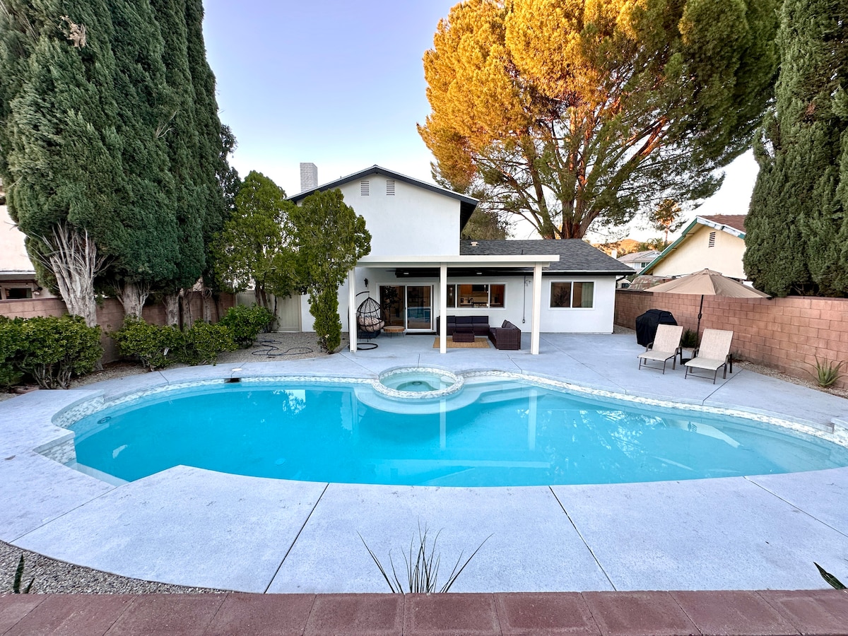 Desconecta de la rutina en este alojamiento único y relajante. Esta casa de Santa Clarita está enclavada en la parte superior de una larga entrada con vistas increíbles. A 15 minutos de 6 banderas y a solo minutos de tiendas locales, restaurantes y la autopista. Con 2 patios de entretenimiento, no te la puedes perder. El patio delantero tiene una vista y el patio trasero se completa con una isla de barbacoa, TV de 65 pulgadas y asientos personalizados para grupos grandes y pequeños. Esta casa inteligente tiene TV en cada habitación, 4 camas y juegos de arcade en el garaje.