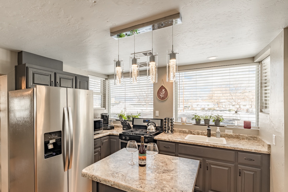 Te va a encantar esta casa cómoda y moderna. Creé este lugar para el viajero inteligente que quiere que su alojamiento sea parte de su experiencia vacacional. Cuidadosamente diseñada como una base especial para la aventura del norte de Arizona, piensa en ella como un lugar tranquilo para recargar las pilas. Tus vacaciones acaban de mejorar mucho con sábanas suaves, un sofá acogedor y una zona para ver películas al aire libre. Los restaurantes y el tren están a pocos pasos del centro de la ciudad. ¿A qué estás esperando?