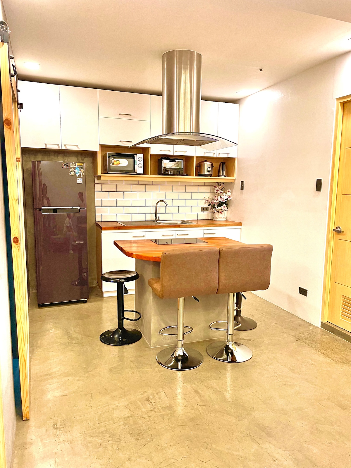El alojamiento se encuentra en el centro de Metro Manila, por lo que el acceso a las principales ciudades es fácil. Está cerca de supermercados, comida rápida, tiendas de comestibles y bancos. La entrada del edificio es un espacio comercial con tiendas de comida, lavandería y salón de belleza. El estudio con aire acondicionado tiene una cama tamaño queen, mesa de comedor, TV inteligente con Netflix, nevera y electrodomésticos de cocina. Hay una pequeña zona de cocina y un espacio abierto en la parte trasera para cocinar con utensilios de cocina y para comer.