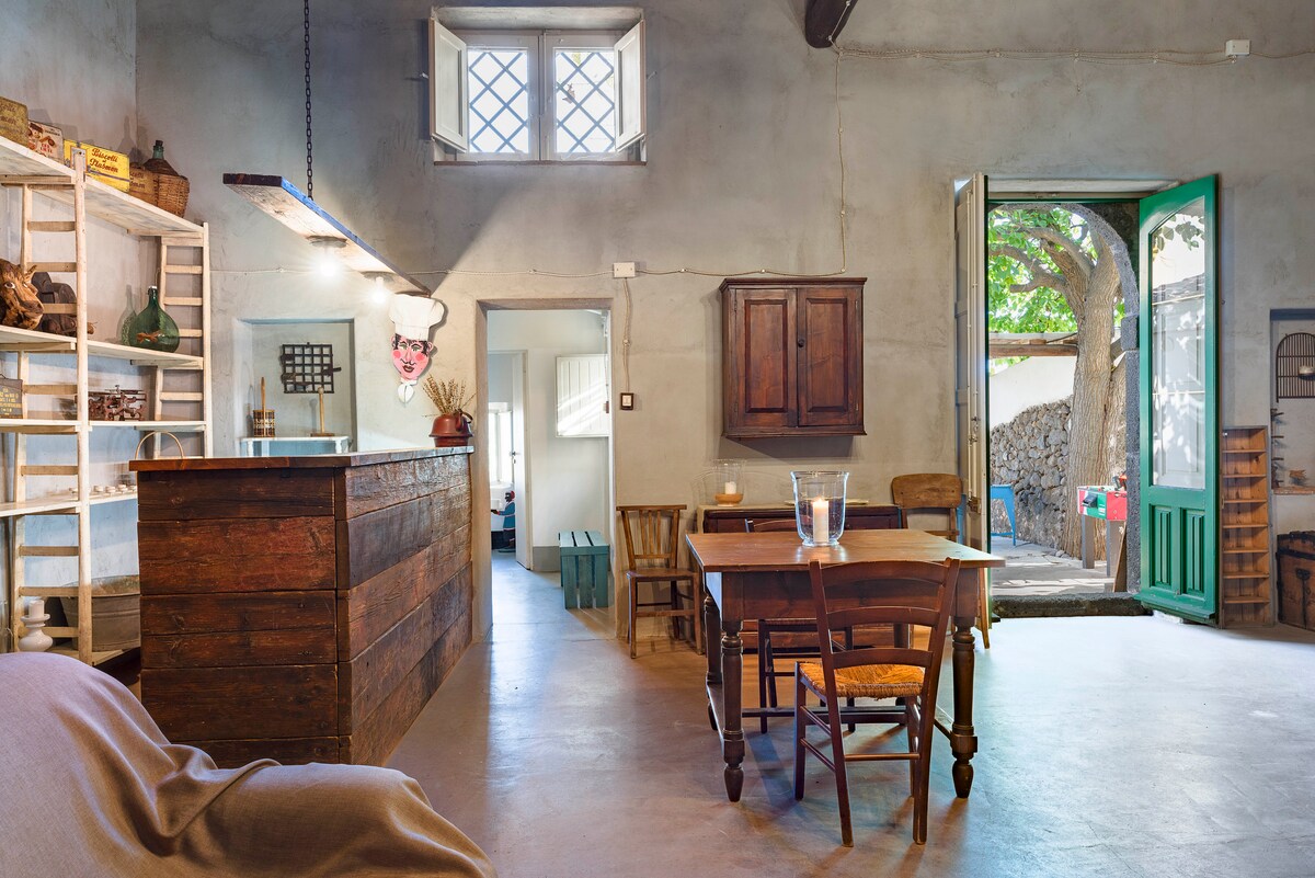 Petra Nìura – Ad Maiora Experience es un entorno natural en medio de rocas de lava y de nuestros propios viñedos, que ofrece vistas impresionantes del mar Mediterráneo y del Etna. En las ruinas de un antiguo palmento siciliano del siglo XVIII, se encuentra un alojamiento en una bodega para 4 personas + 2 camas, con un jardín evocador, una piscina de uso exclusivo y una experiencia enológica. Te encantará la bienvenida de los anfitriones: no es un alojamiento convencional, sino un lugar único para sentirte como en casa y vivir una auténtica experiencia siciliana.