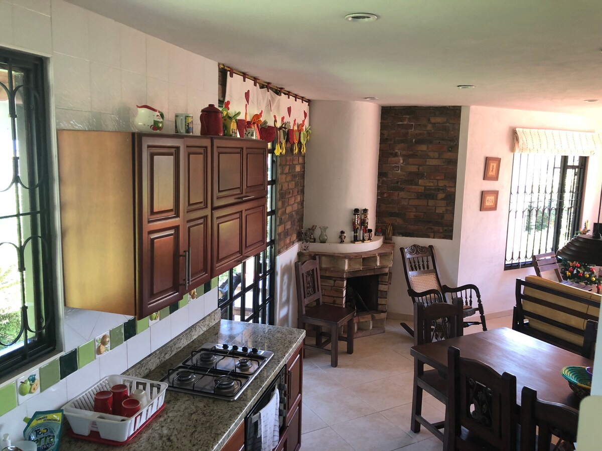 Hacienda campestre los Zipas Casa campestre amoblada con excelente distribución de espacios, 5 alcobas, cocina integral, 2 baños sociales, 2 baños privados, Sala y comedor muy amplios, chimenea, Tv 59 pulgadas y directv, balcón, terraza, parqueadero cubierto. Rodeada de Jardines, zonas verdes, naturaleza, rodeada de montañas, excelente vista por los costados a montañas, bosques y al pueblo. Posibilidad de servicios adicionales de baño turco y BBQ.