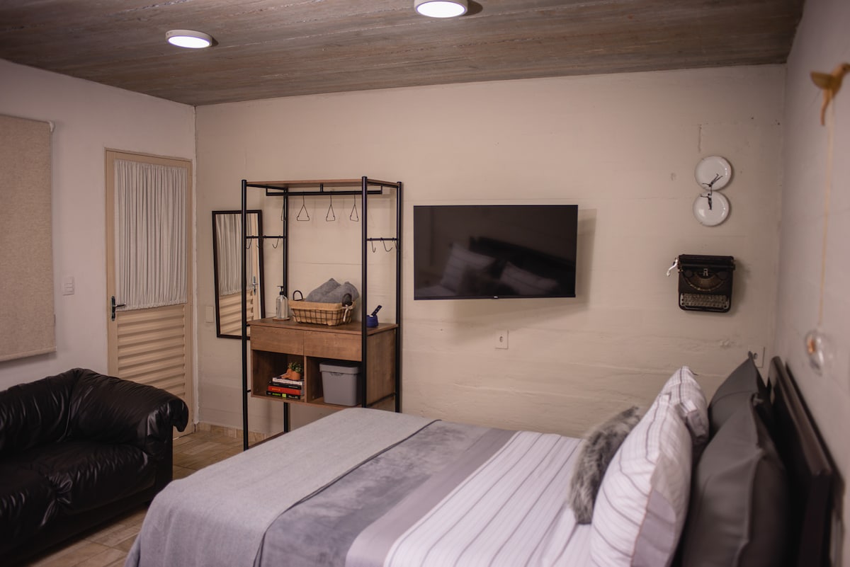 Acogedor loft en SJDR: ¡comodidad y vista exclusiva! 🏡✨ Moderno y práctico, nuestro loft tiene de todo: TV por cable, aire acondicionado, secador de pelo, cama completa y baño. ¡Cocina equipada con estufa, nevera, microondas y más! Bocadillos y bebidas por separado. En el edificio, disfruta de un espacio de trabajo compartido, una zona gourmet con una barbacoa, una piscina y un cenador con una vista increíble de São João del-Rei. ¡Tu escapada perfecta te espera! 💖