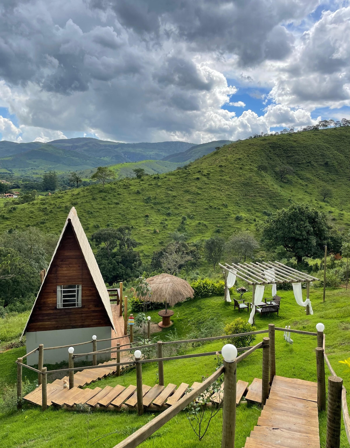 La Yurta Romántica es una invitación al amor en forma de cabaña. Construida de forma artesanal y sostenible, inspirada en las tiendas asiáticas, combina comodidad y lujo con alma. Amplio, con una terraza cinematográfica, bañera de inmersión, hamaca suspendida, cocina tropical y vista completa de la pared de Canastra. Aquí, el cielo brilla por la noche, la privacidad da la bienvenida a la pareja y cada detalle invita al encanto. Un refugio raro, perfecto para celebrar el amor en su forma más sensible.