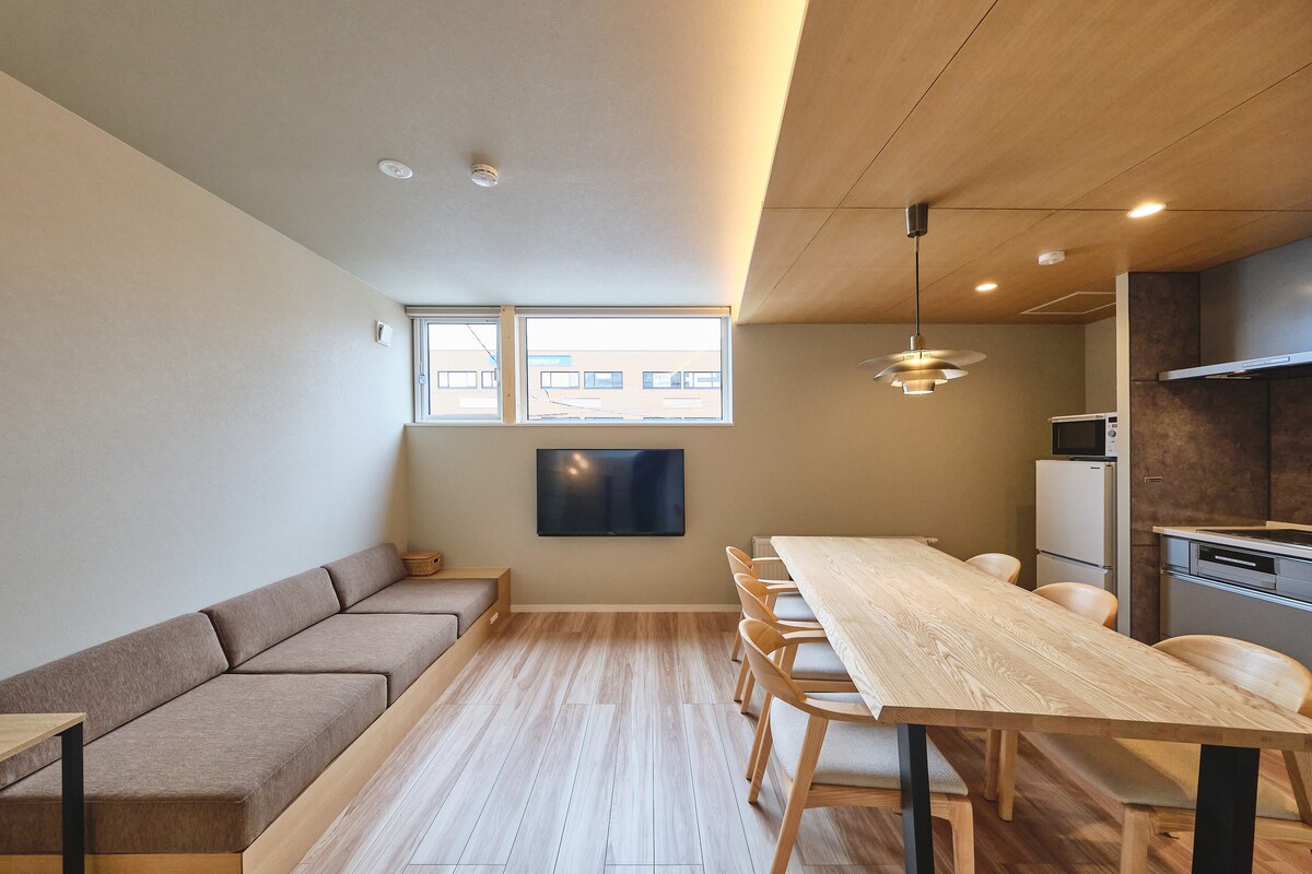 ¡ABIERTO en julio de 2025!Puedes alquilar todo el piso de un nuevo hotel de 5 pisos con sauna.Esta habitación está en el segundo piso y mide unos 95 ㎡.Hay un total de 5 camas en las dos habitaciones.Los dos dormitorios tienen 3 camas individuales pequeñas (83 cm × 195 cm) y 2 camas dobles (140 cm × 195 cm).Podemos proporcionar hasta 3 juegos de colchones individuales y futones si el número de huéspedes supera los 5. [La estación más cercana] A 5 minutos a pie (350 m) del tranvía de la ciudad de Sapporo "Nishi Line 9jo". A 11 minutos a pie de la salida 2 de la estación Nakajima Koen en la línea de metro Nanboku (700 m). A 17 minutos a pie de la salida 5 de la estación de Susukino en la línea de metro Nanboku (1,3 km) Estacionamiento Hay estacionamiento disponible para el primer grupo que llegue (se requiere reservación).Puedes estacionar hasta 2 autos seguidos.El precio es de 3300 ¥ por noche.Desde la cuarta noche, cuesta 1,100 yenes por noche.Se cobrarán tarifas adicionales una vez que se confirme la reservación. [Cómo moverse desde el aeropuerto de New Chitose] Sube desde la estación del aeropuerto JR New Chitose y bájate en la estación de JR Sapporo.Desde la estación de JR Sapporo, mueve por la estación, toma un tren con destino a la estación de Makomanai en la línea de metro Nanboku y bájate en la estación de Nakajima Koen.Está a unos 11 minutos a pie de la salida 2 de la estación de Nakajima-Koen.