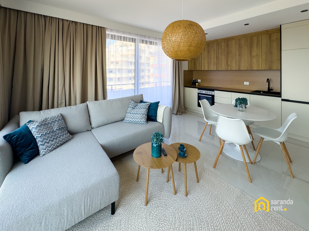 Disfruta de una experiencia elegante en este lugar céntrico. El moderno apartamento equipado y reformado te ofrece comodidad y relajación para una estancia más larga. Situado en un barrio tranquilo y agradable y también en una excelente ubicación para explorar cerca de las playas y el centro de la ciudad vieja Ubicado en la hermosa Saranda, perfecta para parejas o familias con niños. El apartamento está cerca de tiendas de comestibles, cafeterías ,restaurantes y playa. Cocina totalmente equipada, ropa de cama y toallas disponibles