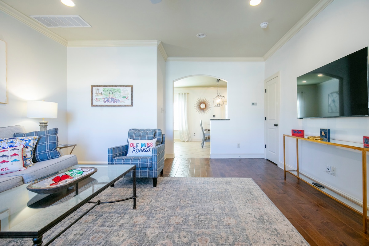 Ubicación. Ubicación. ¡A menos de una milla del campus de Ole Miss! ¡A menos de 3 millas de The Square! ¡Restaurantes y tiendas a pocos minutos! 2 habitaciones queen con baño privado en la planta superior. Una sección queen extraíble y un medio baño en la planta baja. Cocina completa, lavadora/secadora. Todo lo necesario para un hogar privado lejos de casa. Ofrecemos capacidad para dormir hasta 6 personas cómodamente. Plaza de estacionamiento asignada en la puerta principal.