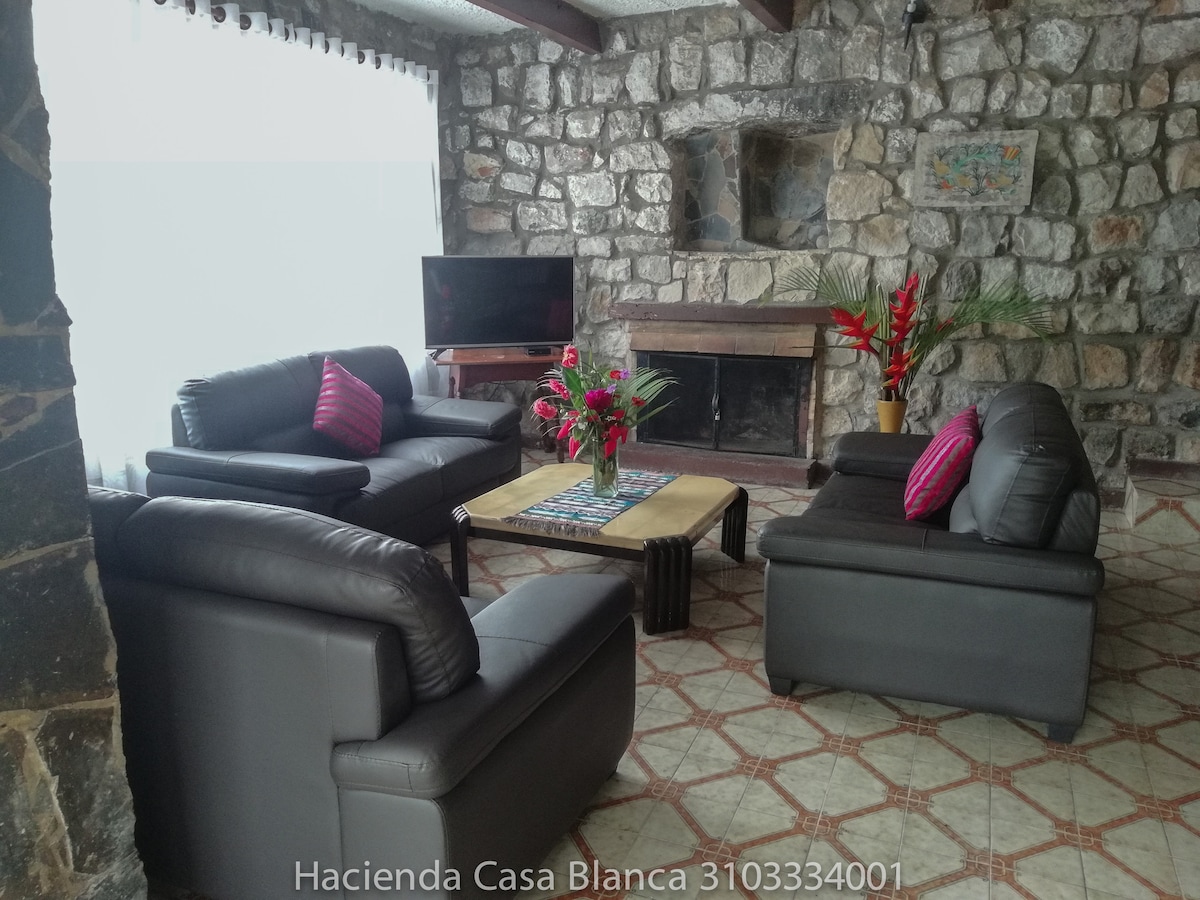 Sal de la rutina pasa unos días de total relajación en Hacienda Casa Blanca. Piscina privada, 5 minutos del pueblo, capacidad 25 personas, 5 habitaciones cada una con baño privado. Piscina BBQ Parqueadero Zonas verdes ideales para acampar.