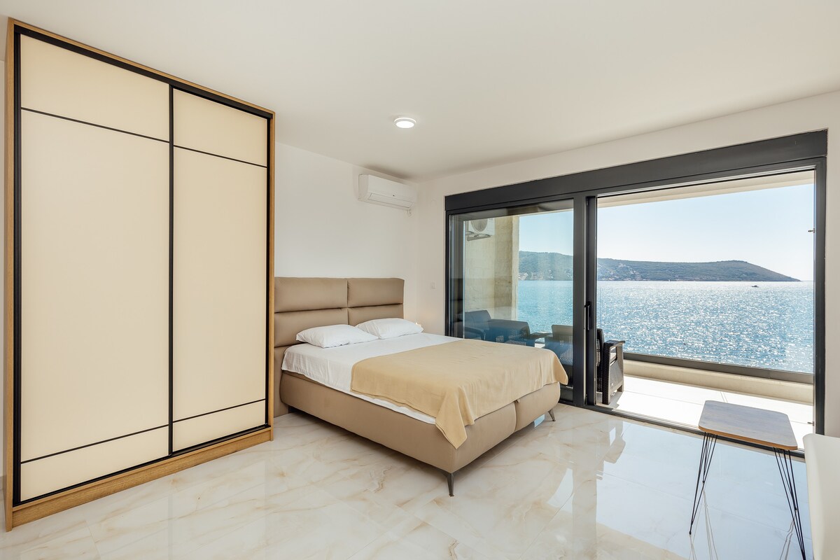 Departamento con vistas al mar, dos dormitorios con piscina, ubicación perfecta, a 50 metros de la playa, a 300 metros del casco antiguo de Herceg Novi, a unos 10 minutos a pie, cerca del monasterio de Savina, a 200 metros del complejo de lujo y del puerto deportivo Lazure. El apartamento cuenta con todo lo necesario para que tu estancia sea genial. Estacionamiento gratuito.