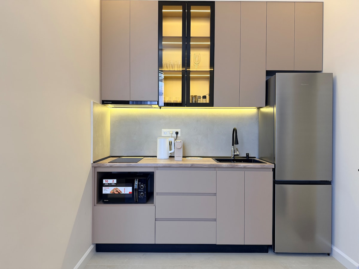Bienvenido a tu alojamiento de lujo en Ereván: un apartamento de 2 habitaciones bellamente diseñado. Este espacio moderno es perfecto para familias, parejas o viajeros de negocios que buscan comodidad, estilo y una estadía relajante. El departamento cuenta con: • 2 amplios dormitorios con cómodas camas • Una sala de estar elegante con un sofá acogedor y TV • Cocina totalmente equipada para cocinar en casa. • Baño limpio con todos los elementos esenciales • Aire acondicionado • Wifi de alta velocidad