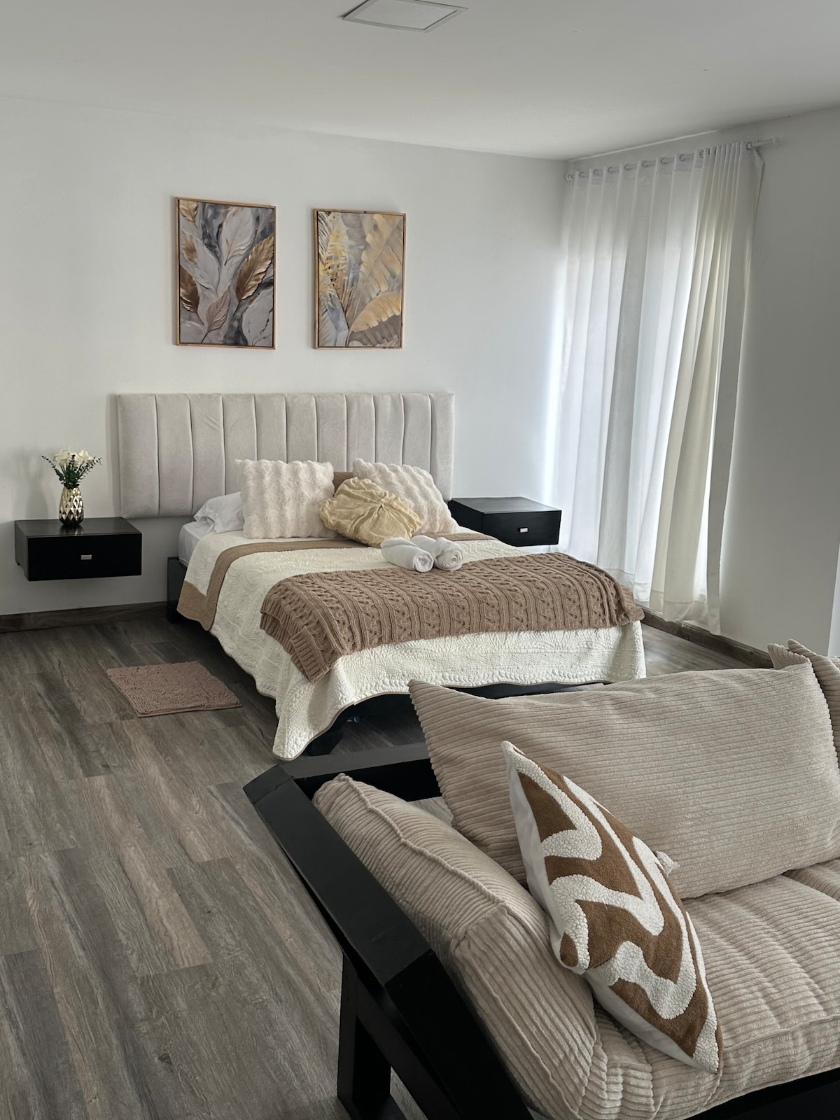 Relájate en este espacio tan tranquilo y elegante. Suite confortable, la opción ideal para viajes en familia o pareja. Situado a 5 minutos del terminal de la ciudad, 8 minutos de la UTPL, 5 minutos de la UIDE, 3 minutos del Complejo Ferial, 3 minutos del Teatro Benjamín Carrión, 3 minutos de la clínica OV. Aogedor, tranquilo, elegante. CONSTA: Un dormitorio, sofá cama, baño completo, sala,comedor,cocina,área de lavado y secado. Smart TV con, Paramount,Magis TV, Netflix,Wifi. Garage.