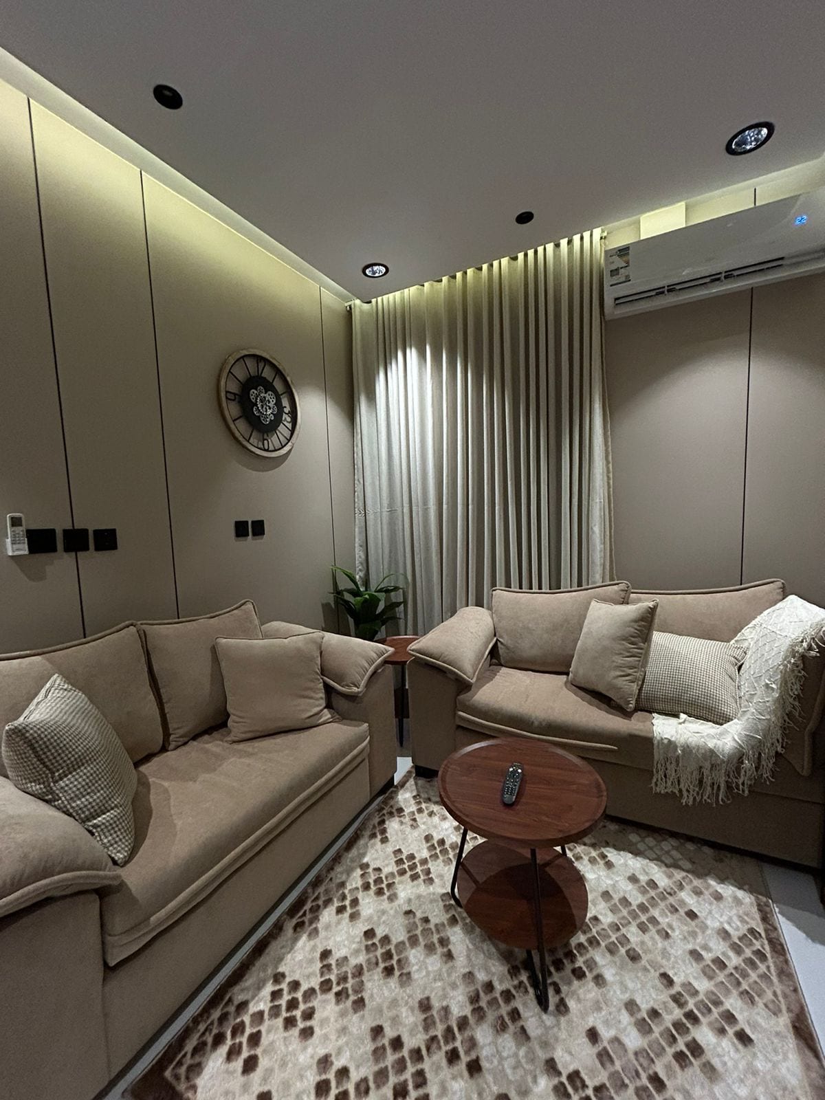 Lujoso estudio cerca del bulevar Características: 1- Cerca de todos los eventos de las estaciones de Riad 2- Cerca del primer parque Aqeeq Parque 3-Aqiq🌴 4- Parque de Riad Hay ( lavandería +supermercado + tienda de llamadas + barbero para hombres)en la calle principal del edificio. Te deseamos una feliz estadía en tu segundo hogar 💜