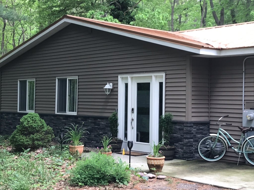 Disfruta de la sencillez de este retiro tranquilo y céntrico. Ubicado en medio acre. Recientemente se completó una remodelación; todo en este alojamiento es nuevo. El dormitorio uno tiene una cama tamaño king. El dormitorio dos tiene una cama tamaño queen. El sofá cama también es tamaño queen con colchón de espuma viscoelástica. Para los entusiastas del yoga, la terraza lateral es el espacio perfecto para centrarse. La casa de campo se encuentra a poca distancia a pie del campo de golf Clearbrook y a poca distancia en coche de Oval Beach o del centro de Saugatuck.