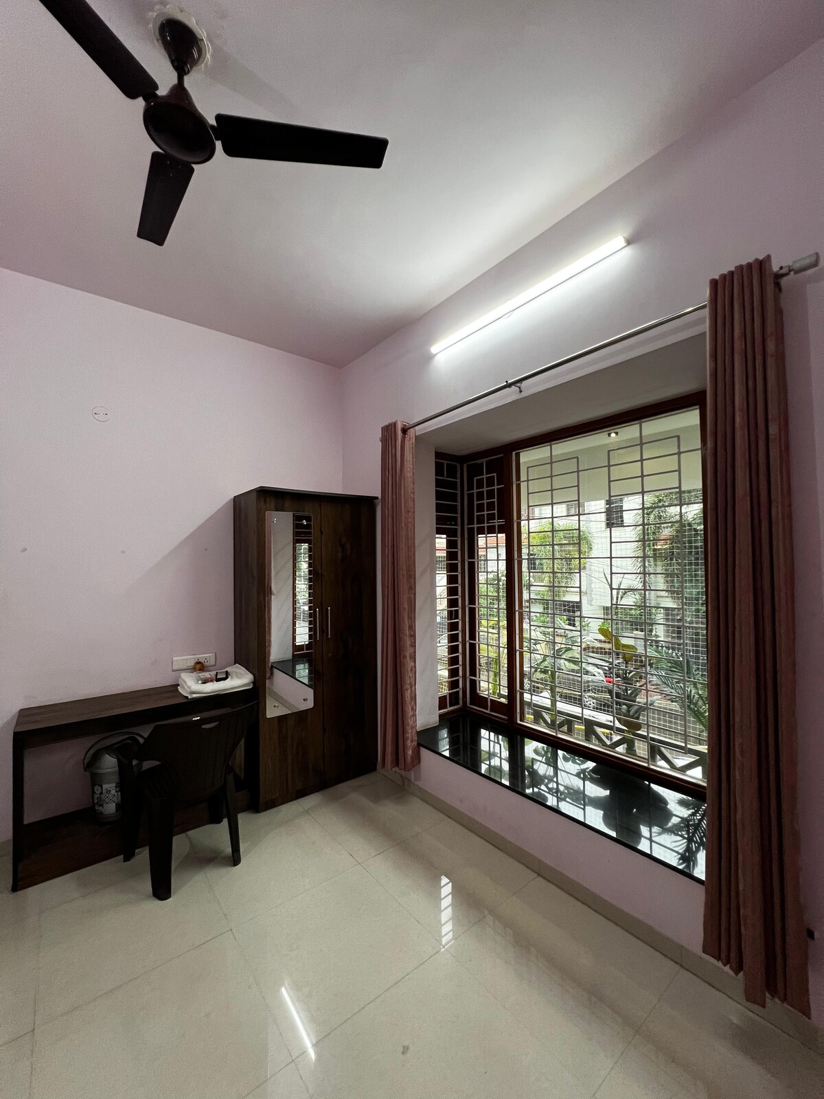 Apartamento de 1800 pies cuadrados en el tercer piso con aire acondicionado (2 dormitorios) con 3 baños, ascensores, 2 balcones, impresionantes vistas al jardín, nevera, horno microondas, batidora, cómoda sala de estar y comedor, purificador de agua para agua potable, nevera, conexión de gas y utensilios para cocinar, lavadora y TV con TataSky y conexión wifi, rodeado de restaurantes, lecherías, clínicas hospitalarias, tiendas de comestibles, lavandería, gasolineras, autobús, coche, servicio de taxi, cerca de SG Road, estación de metro, conexión ferroviaria y muchos más.