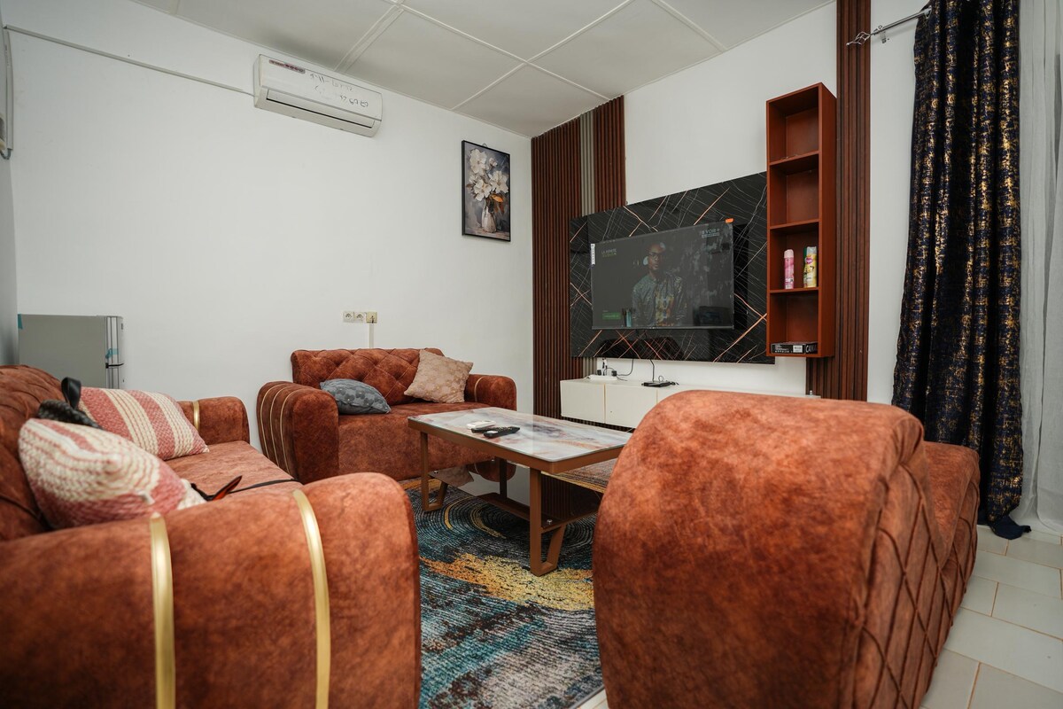 Relájese en este alojamiento tranquilo y elegante.Situado en Korhogo barrio Sodepra, Olympe en un entorno seguro y de fácil acceso , salas de estar disponibles para sus estancias cortas y largas.