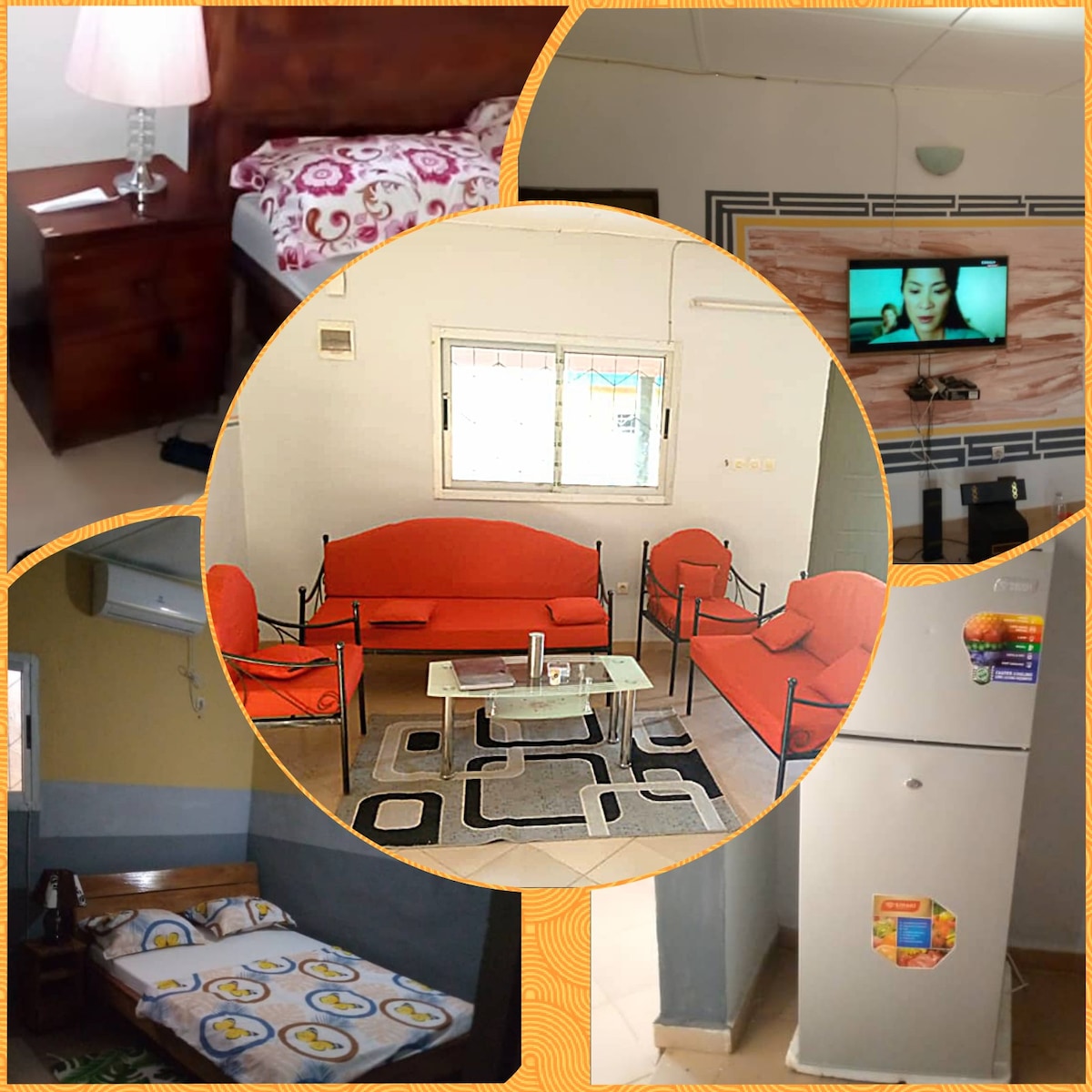 Estudios equipados con TV con aire acondicionado cocina. Aparcamiento interior seguro en la zona industrial de Korhogo. Zona muy tranquila. Ideal para estancias cortas o largas. ¡Puesta a disposición de un scooter para tus desplazamientos! Le daremos todos los consejos útiles para que tenga una agradable estadía.