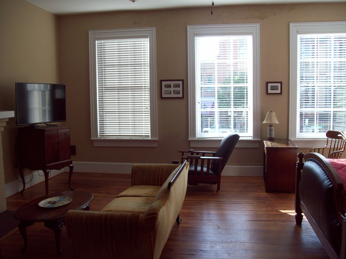 Este es un romántico y lujoso apartamento sobre el estudio de un artista, ¡con aparcamiento justo enfrente! Las ventanas llenas de luz que llegan hasta los suelos pintados de blanco destacan los artefactos arquitectónicos y las pinturas del artista. La decoración ecléctica es moderna con toques de arte tribal. La casa victoriana está situada en el centro de Macon, donde hay una gran cantidad de restaurantes, cervecerías y entretenimiento, todo a poca distancia a pie. Tu estancia será una experiencia para recordar.