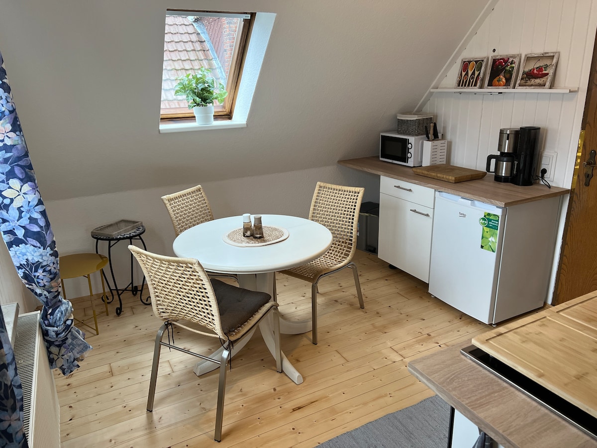 Dormitorio pequeño y acogedor con una cama individual y baño. Cocina exclusiva disponible, así como el uso compartido de lavandería y terraza con barbacoa. Aparcamiento en el patio, a la derecha de la casa. A 3 km del casco antiguo. Marktkauf, Mediamarkt, ferretería y otras tiendas a poca distancia. Se trata de una suite en una casa unifamiliar (bungalow) donde vive nuestra propia familia. Tenemos dos perros encantadores (Lilli y Berry) que están encantados de dar la bienvenida a nuestros huéspedes.