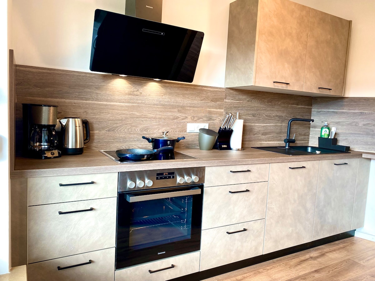 Casa de vacaciones H-Auszeit ¡Diseñada con atención al detalle! La casa cuenta con un equipamiento de primera clase que no deja ningún deseo por cumplir. Desde la espaciosa y elegante cocina para preparar comidas hasta la cama Tempur®, donde pasarás agradables noches. Lo más destacado de la casa es el jacuzzi privado, donde podrás dejarte mimar por los cálidos chorros de masaje. Damos gran importancia a que te sientas cómodo con nosotros.