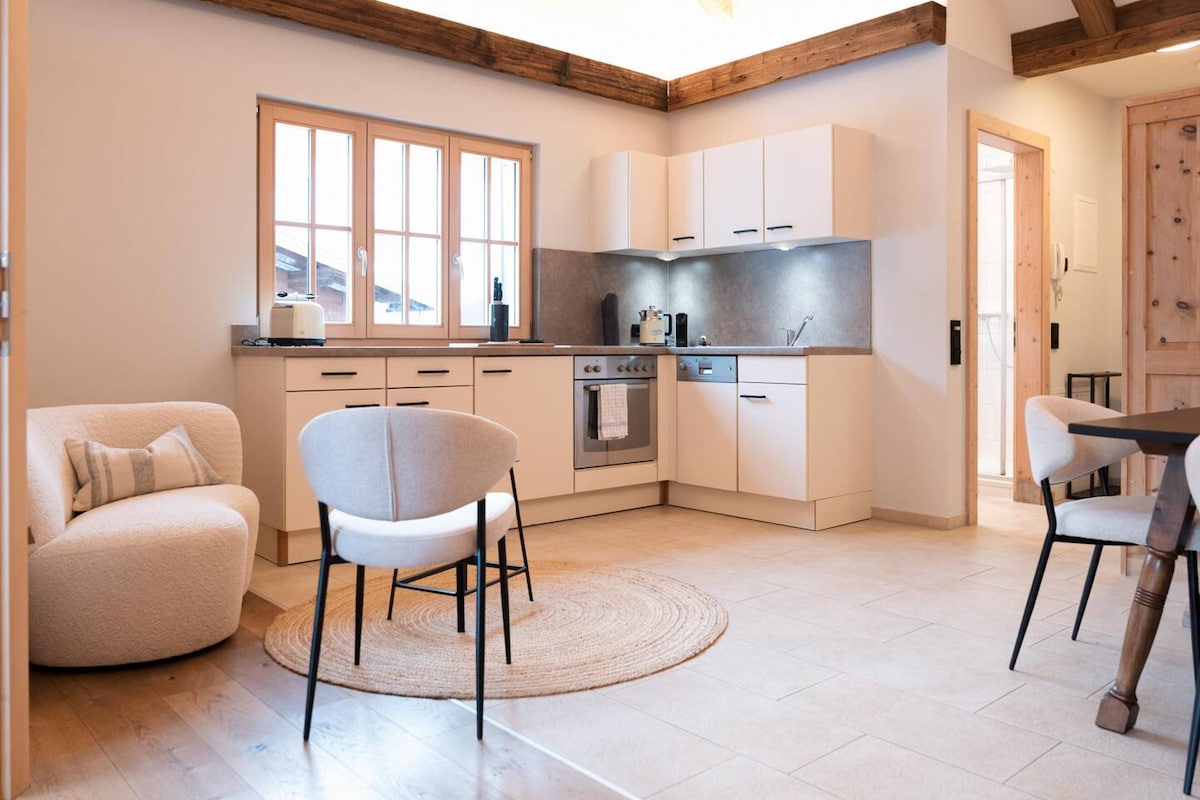 A través de los grandes ventanales panorámicos, podréis dejar que el sol os acaricie al despertar y contemplar la luz de la luna por la noche mientras tomáis una copa de vino. ¡Disfrutar del impresionante panorama montañoso desde cada habitación es algo que solo podéis conseguir con nosotros! El apartamento de vacaciones "todo incluido" para 2 a 6 personas está integrado en nuestra moderna construcción de madera. ¡Estamos deseando recibir a nuevos huéspedes y viejos amigos y estamos a disposición de todos los huéspedes para ayudarles con la planificación y realización de excursiones!