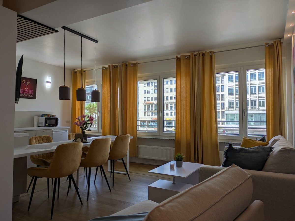 A 5 minutos a pie de la estación central, Königsplatz todos los museos de arte/Pinakotheken/exposiciones/universidades TU/LMU y Marienplatz en 10 minutos. Todo lo importante a poca distancia a pie. Te encantará porque es generosidad y terrazas para el sol del este y oeste, y buena ubicación para muchos restaurantes en el vecindario cercano.