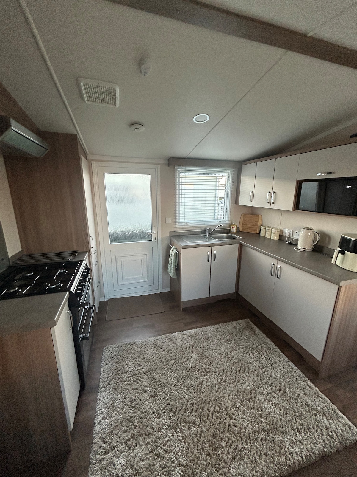 Esta caravana con temática de playa es la escapada perfecta, con las vistas panorámicas costeras más increíbles para sentarse y relajarse en la terraza, con un gran amanecer y atardeceres. Cocina totalmente equipada, habitación con cama doble con baño en suite que tiene bañera para que puedas tener un gran baño de burbujas relajante después de caminar por las hermosas playas, también tiene un inodoro separado con ducha, calefacción central y doble acristalamiento. Está a un tiro de piedra de High Street, con muchos restaurantes y pubs para probar.