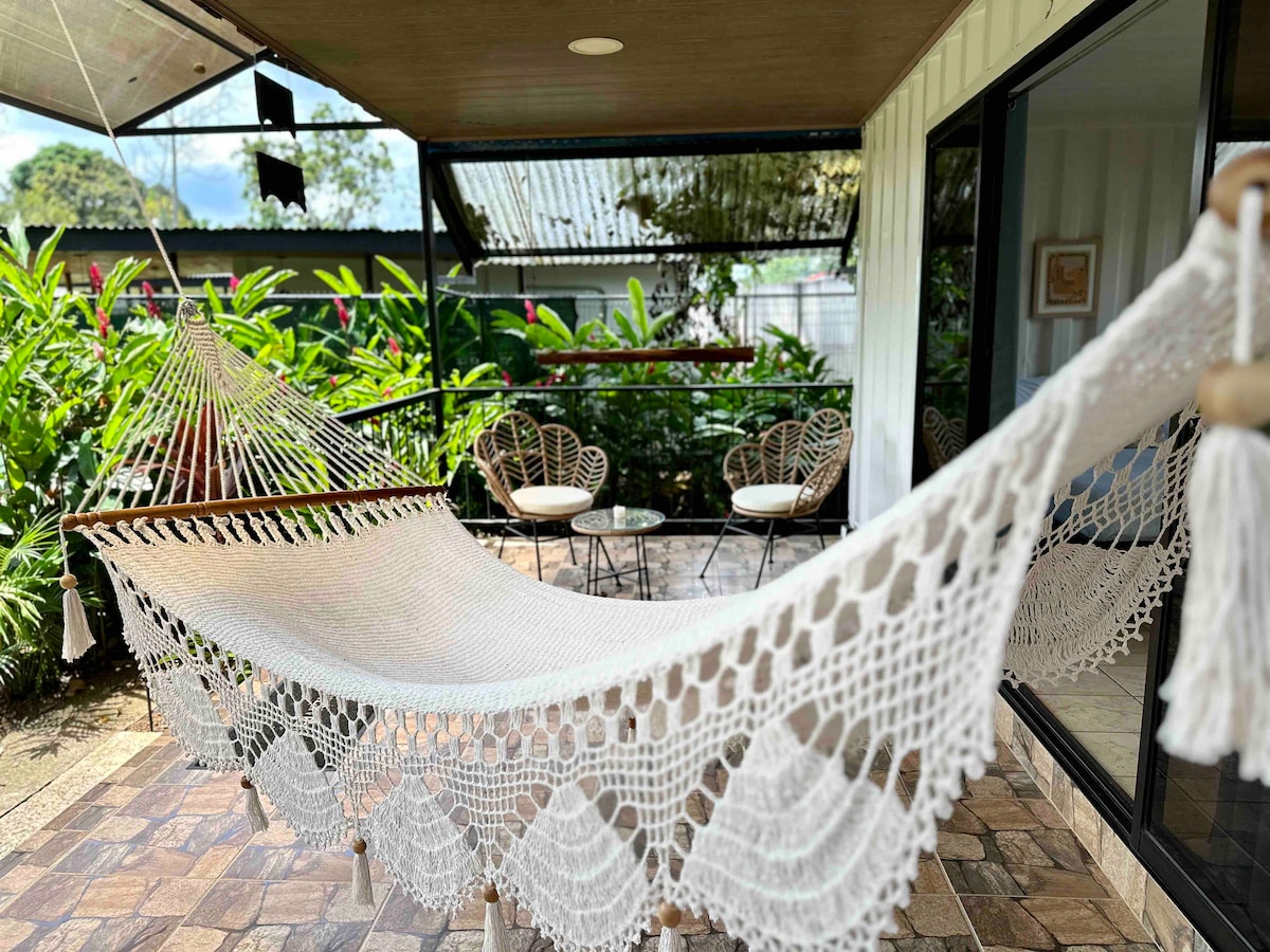 A modern loft style 1 bedroom, 1 bathroom with modern luxuries and furnishings located 15 minutes outside of La Fortuna Town. Pool on site and outside seating area. With many amazing hot springs just 20 minutes away. Our newly built modern home offers air conditioning, stainless steel appliances within a gated community. King size bed, high speed internet, Smart TV, outside pool furniture, washer/dryer. Breakfast included for stays less than two weeks. On site spa and hair salon.