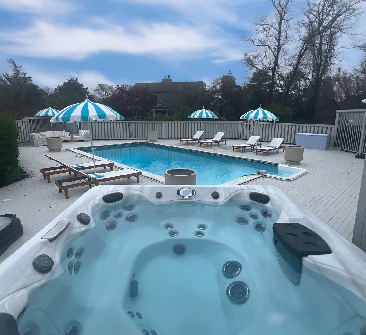 Elegante y moderna casa de playa en Cape Beach ubicada en Hampton Bays al sur de la autopista, a 5 minutos en auto de las playas. Piscina climatizada de agua salada. 4 dormitorios + habitación con cuna y oficina. 2 baños. Terraza al aire libre con comedor familiar +barbacoa. Patio trasero completamente cercado y arbolado con hermosas puestas de sol. Dormitorio tamaño king en el piso superior con baño privado + dormitorio doble directamente fuera del dormitorio principal. El piso principal tiene otro dormitorio tamaño king + dormitorio doble, baño principal, salón + cocina con una enorme isla para sentarse. TV Den. Aire acondicionado central. A 15 minutos a pie/a 2 minutos en auto de tiendas+tren.