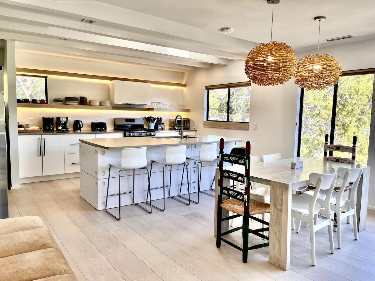 ¡Bienvenido a The Boho, un refugio de Sedona con todas las comodidades! Disfruta de una casa de 4 dormitorios y 2 baños completa con sauna para 8 personas, estudio de yoga, mesa de billar y habitación secreta (¡diviértete encontrándola!) Ubicada en un barrio tranquilo con vistas a las rocas rojas, puedes cenar fuera en el patio o dentro, relajarte en la gran sala para ver una película nocturna o jugar al billar. Estás a pocos minutos de rutas de senderismo, cafeterías, restaurantes y mucho más. Sean cuales sean tus necesidades de escapada, ¡esta casa está aquí para ayudarte!