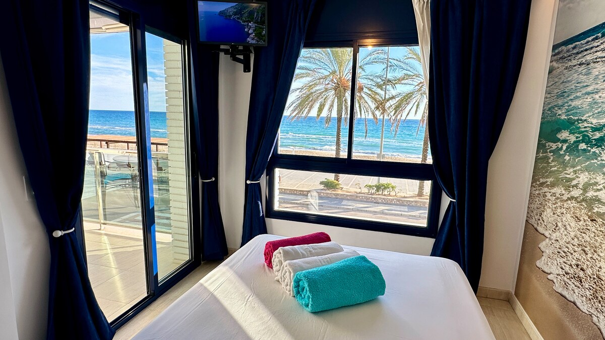 Alojamiento con todas las estancias climatizadas, 3 habitaciones, dos baños completos y plaza de aparcamiento, con vistas espectaculares al mar. Su gran encanto es la ubicación en primera línea: cada instante se vive con la calma y la belleza del mar, ideal para desconectar y relajarse. Un espacio acogedor y funcional, con todas las comodidades para unas vacaciones inolvidables. Situado en una zona residencial muy tranquila, donde se respira paz, buen ambiente y una excelente convivencia.