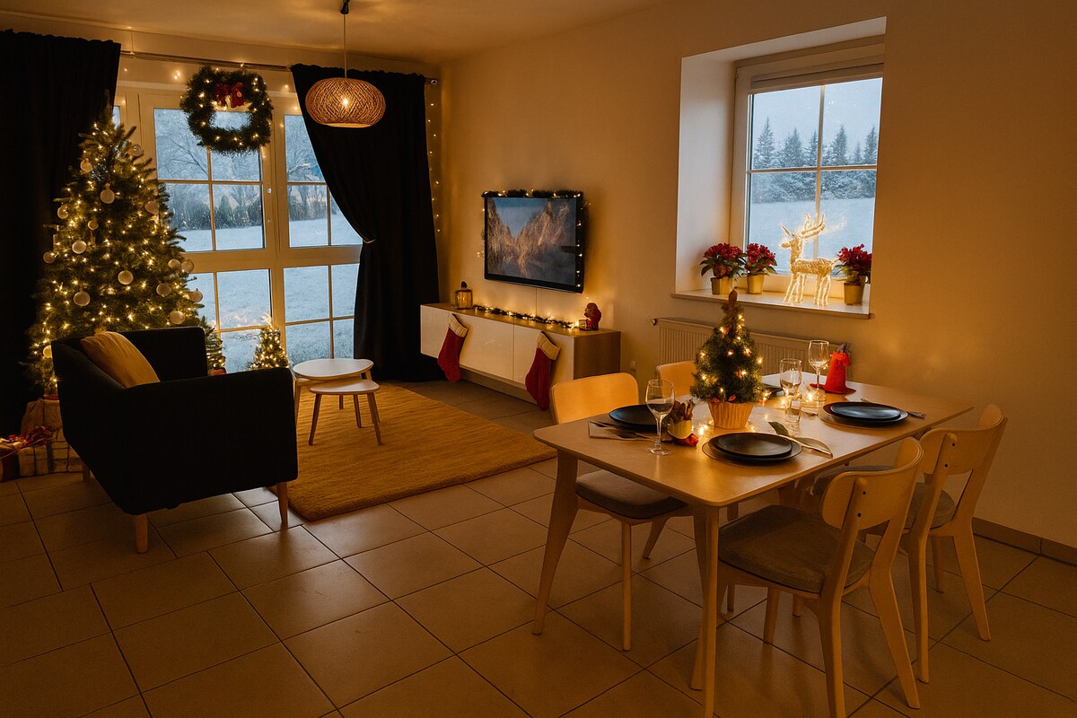 Retiro 🌿 romántico en un jardín | Chimenea, bicicletas y vistas Escápate a este elegante refugio a nivel del jardín en una encantadora casa de estilo inglés. Rodeado de naturaleza con vistas panorámicas, cuenta con una estufa de leña, ropa de cama de primera calidad, electrodomésticos SMEG y un jardín privado. Disfruta de cervezas artesanales gratuitas y chocolate, cielos estrellados junto a la chimenea y paseos por el bosque. Bicicletas gratuitas incluidas. Tu anfitrión multilingüe hará que tu estadía sea tranquila, romántica e inolvidable. Experimenta la magia de la verdadera tranquilidad.