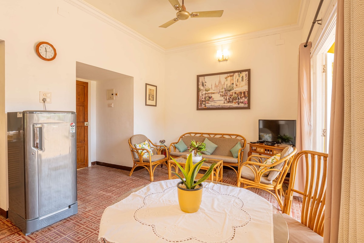 (Ten en cuenta que el apartamento está en el primer piso y no hay ascensor. El aparcamiento está en la calle) Escondido en uno de los barrios con más encanto de Colva, a un tiro de piedra del amado Menino Jesus Café, este apartamento de 2 dormitorios cuidadosamente diseñado combina el encanto clásico de Goa con la comodidad moderna. Ubicada en el primer piso, esta casa es ideal para familias, parejas o grupos pequeños que buscan experimentar lo mejor del sur de Goa.