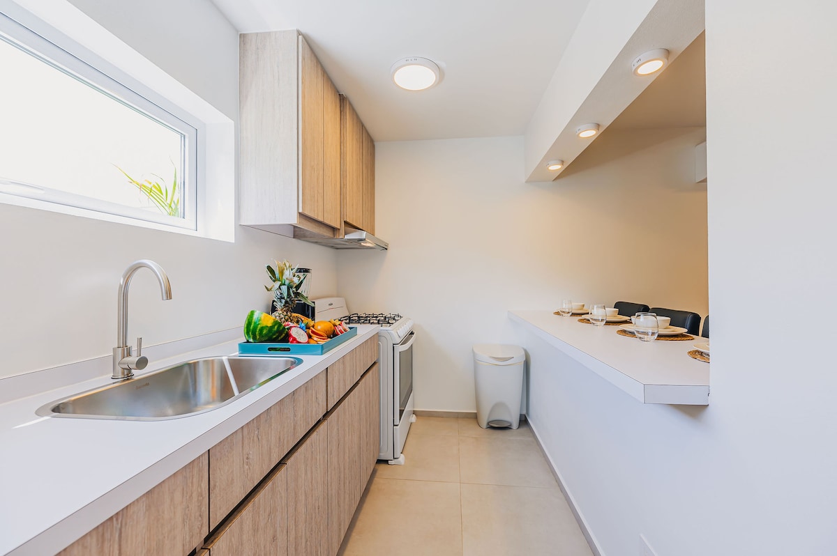 Todo lo que deseas y más allá para tus vacaciones tropicales perfectas. Piscina ✔ privada/ apartamento (entrada privada) en un barrio de villas seguro ✔ Amplio patio con asientos al aire libre a la sombra/Palapa ✔ Wifi y estacionamiento gratuitos Cama ✔ king y almohadas /colchón nuevo para la máxima comodidad de tus vacaciones ✔ Caribe con una decoración moderna y limpia ✔ Sillas de playa y nevera ✔ Cocina totalmente equipada (con lavavajillas) ✔ Aire acondicionado y agua caliente ✔ Hermosa iluminación nocturna en el área del patio/piscina para la máxima relajación.