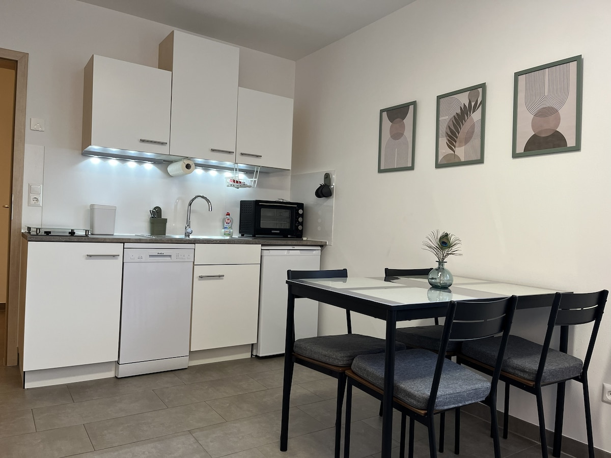 El lema es «como en casa, aunque sea temporal». Para todos aquellos que trabajan en la región y les gusta tener sus «propias cuatro paredes» a su alrededor. Volver a casa por la noche, relajarse y descubrir la región de vez en cuando. Ya sea en coche o en transporte público. La ubicación es ideal. También es adecuado para unas cortas vacaciones para conocer la región del barroco y el vino. Una pequeña terraza te invita a tomar el sol por la mañana.