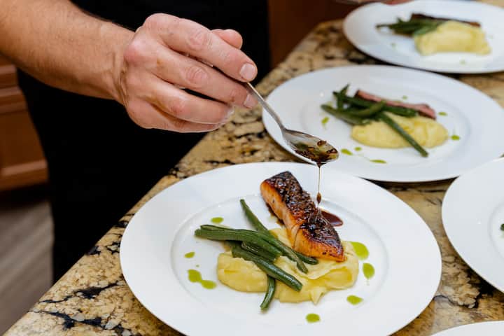 Disfruta de una comida de 3 platos preparada por un chef desde la comodidad de tu casa o alojamiento en Airbnb. Cada plato está hecho a mano con sabores atrevidos y globales y una hermosa presentación. Perfecto para citas nocturnas, cenas íntimas o simplemente para disfrutar de algo elevado. Tu chef privado se encarga de todo, desde la preparación hasta la limpieza, para que puedas relajarte y disfrutar de una experiencia gastronómica inolvidable sin salir de tu espacio.