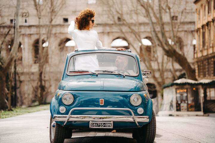 Disfrute de una romántica **sesión de fotos de 2 horas** en Roma con un Fiat 500 clásico. Elige **3 o 4 lugares** que se ajusten a tu estilo en la hermosa Roma. El Fiat 500 también ofrece **transporte entre diferentes lugares**, lo que añade un elegante toque italiano.