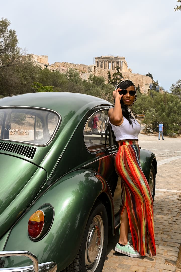 Fotos únicas con la Riviera ateniense como fondo y un VW Beetle de 60 años