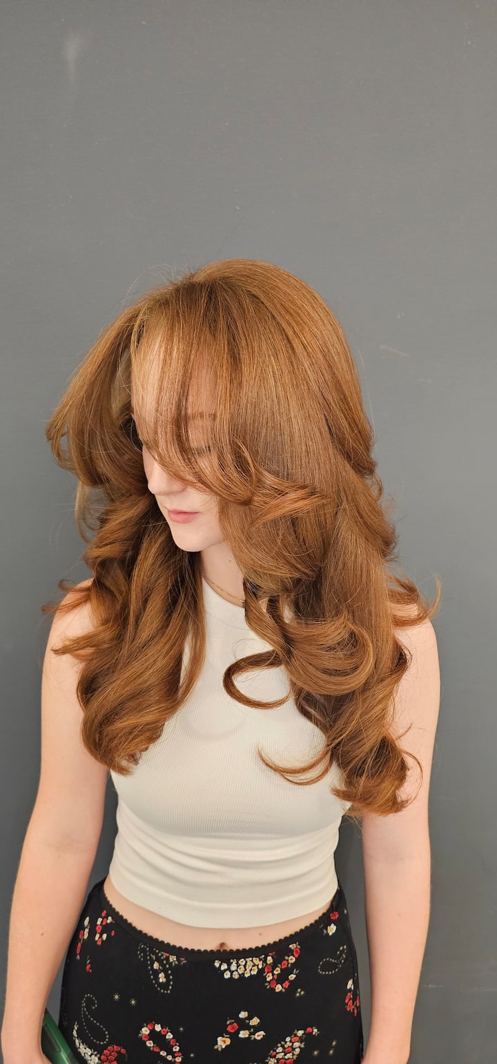 Con un cepillo para rizos conseguirás un look elegante, con cuerpo y volumen. El cabello se alisa en las raíces con un cepillo redondo y un secador, y luego se peina para crear rizos suaves y con volumen con un acabado sedoso. A diferencia de los rizos hechos con plancha, esta técnica aporta volumen y movimiento sin encrespamiento, y ofrece un peinado duradero y agradable al tacto. Es ideal para conseguir un look glamuroso sin esfuerzo: liso en la parte superior, con volumen en la coronilla y rizos sueltos y definidos.