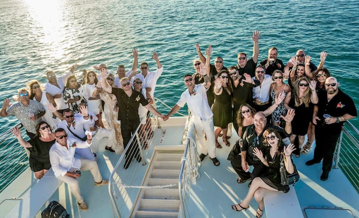Sesión de fotos para despedida de soltera/soltero • Todos con atuendos de boda, accesorios de fiesta ridículos y radicales, esnórqueles, flotadores, pelucas, tatuajes falsos y cócteles • Sesión de 1 hora • Como producto final, los invitados recibirán 10 imágenes digitales editadas profesionalmente • Entrega de imágenes digitales en no más de 10 días hábiles • Ubicaciones • Key West, FL Sugarloaf Key, FL Cujo Key, FL Summerland, FL Big Pine Key, Marathon, FL Duck Key, FL Key Colony Beach, FL Long Key, FL Key Largo, FL