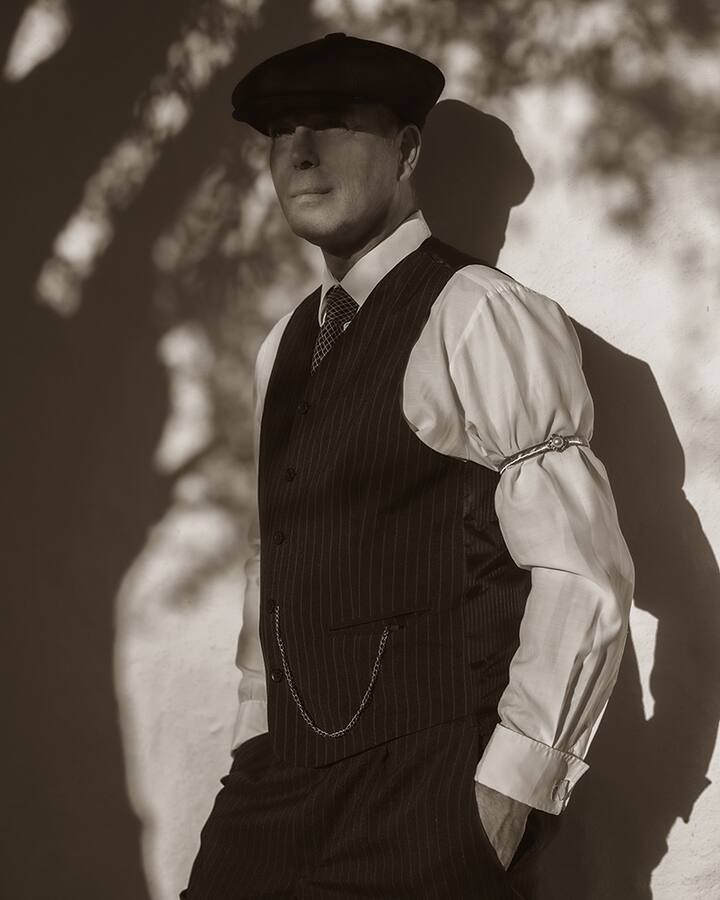 Fotografía con glamour retro o estilo gángster que recuerda a las fotos de estrellas de cine de épocas anteriores.