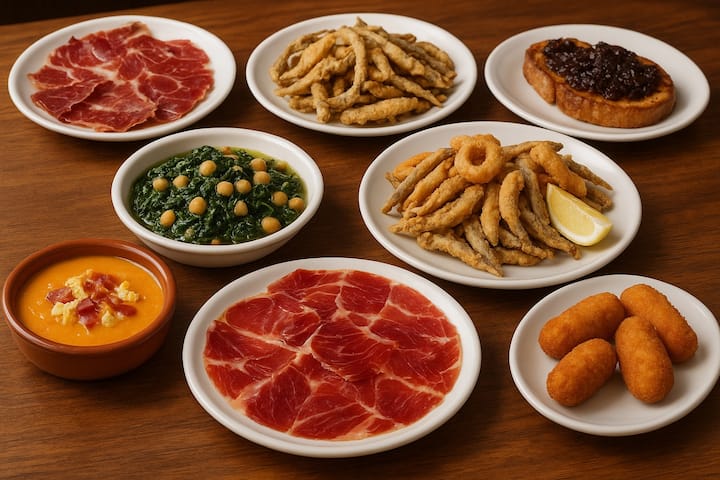 Disfruta con un menú que fusiona los sabores de la gastronomía andaluza con la cocina de vanguardia. Incluye tapas icónicas como salmorejo, espinacas con garbanzos, pescado frito y jamón ibérico. Esta propuesta está diseñada para los apasionados de la buena mesa que desean disfrutar de los platos tradicionales con un toque moderno en un entorno cálido y acogedor.