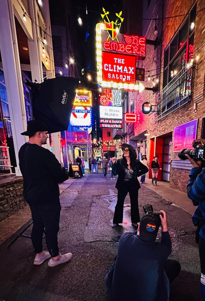 Una forma divertida de comenzar tu noche o simplemente una sesión de fotos que documente a tu grupo en medio de la pintura de la ciudad en rojo: podemos reunirnos en el lugar que elijas y crear imágenes que parezcan que podrían publicarse en tu revista favorita o en la portada de los más buscados de Nashville.